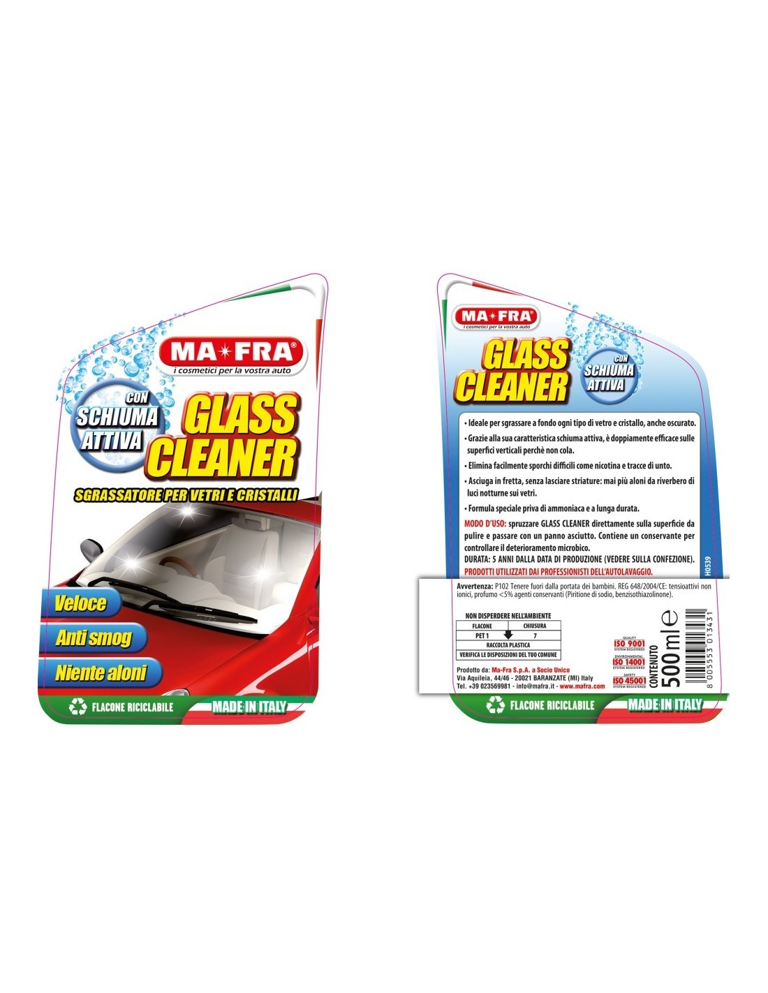 Glass Cleaner è disponibile nel formato da 500 ml o nel pratico formato da viaggio da 150ml.