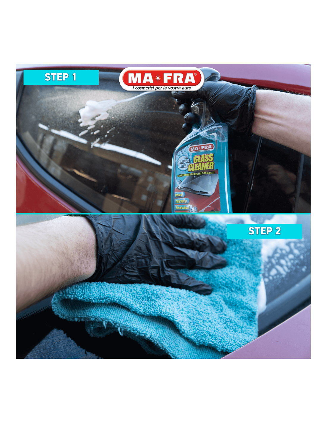 L’utilizzo è semplice: spruzza, lascia agire qualche secondo e rimuovi il prodotto con un panno in microfibra, come ultimo step ti basterà rifinire con un altro panno in microfibra asciutto e pulito. Ripeti se necessario e guarda i tuoi vetri brillare senza lasciare tracce o aloni antiestetici.