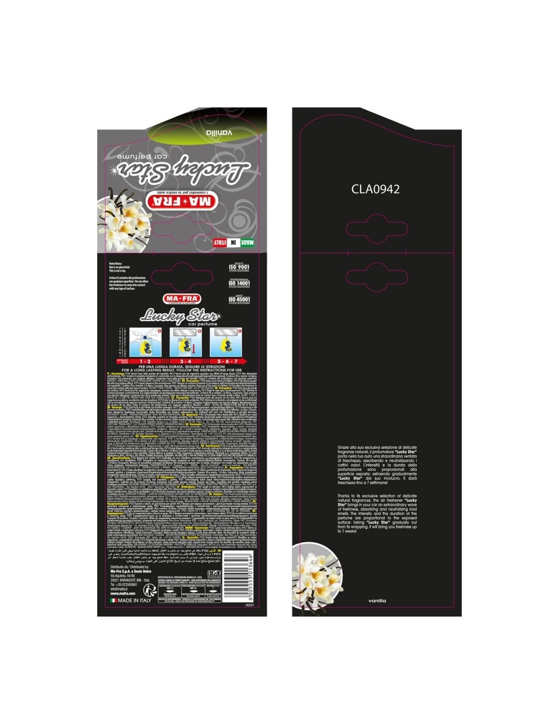 Il profumatore auto Lucky Star porta un tocco di eleganza e benessere nel tuo veicolo. Grazie al suo design esclusivo, si integrerà perfettamente allo specchietto retrovisore o a qualsiasi ambiente della casa.