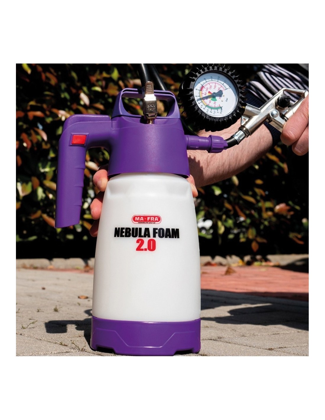 Nebula Foam 2.0 è dotata infatti di un raccordo per l’aria compressa, una valvola di ingresso situata nella testa della pompa che permette l'inserimento dell'aria nel flacone da 2 litri.