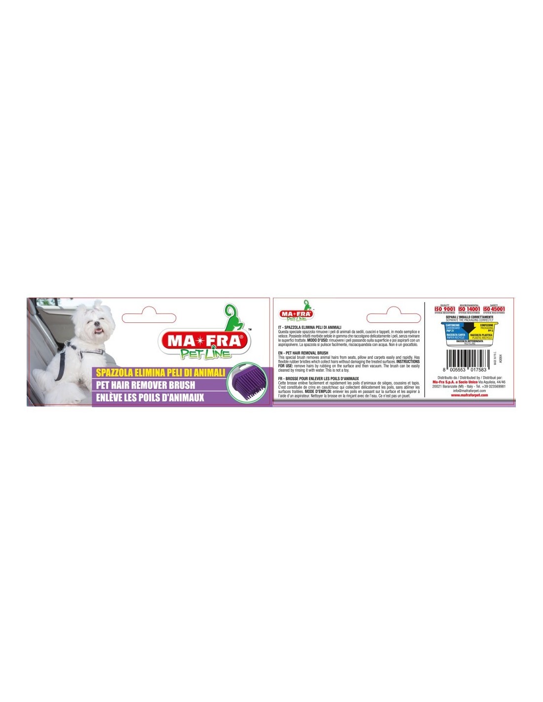 Questa speciale spazzola rimuove i peli di animali da sedili, cuscini e tappeti, in modo semplice e veloce. Possiede infatti morbide setole in gomma che raccolgono delicatamente i peli, senza rovinare le superfici trattate. Facile e veloce, rimuovi tutti i peli di animali senza rovinare le superfici