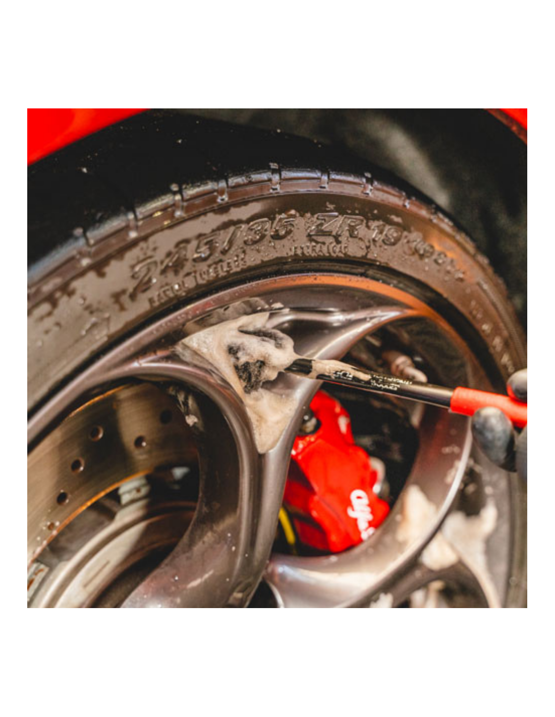 Wheel & Tyre Cleaner è versatile, per lo sporco più ostinato può essere diluito e usato in combinazione con il nostro Pennello Red per il car detailing. Questo permette un trattamento approfondito delle zone più critiche.
