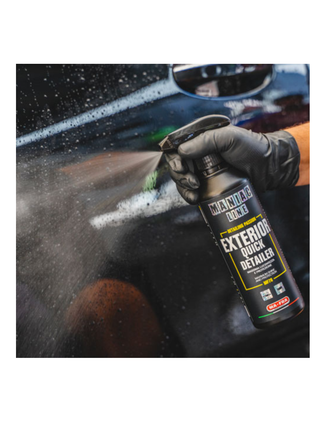 Quante volte, dopo un lavaggio accurato, basta una pozzanghera o un breve parcheggio all’aperto per vedere comparire macchie d’acqua, polvere o impronte sulla carrozzeria? Exterior Quick Detailer Maniac Line entra in azione in pochi secondi per ripristinare il look perfetto dell’auto.