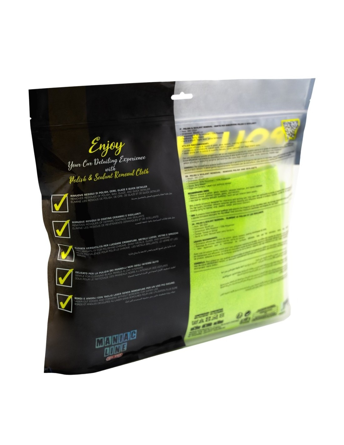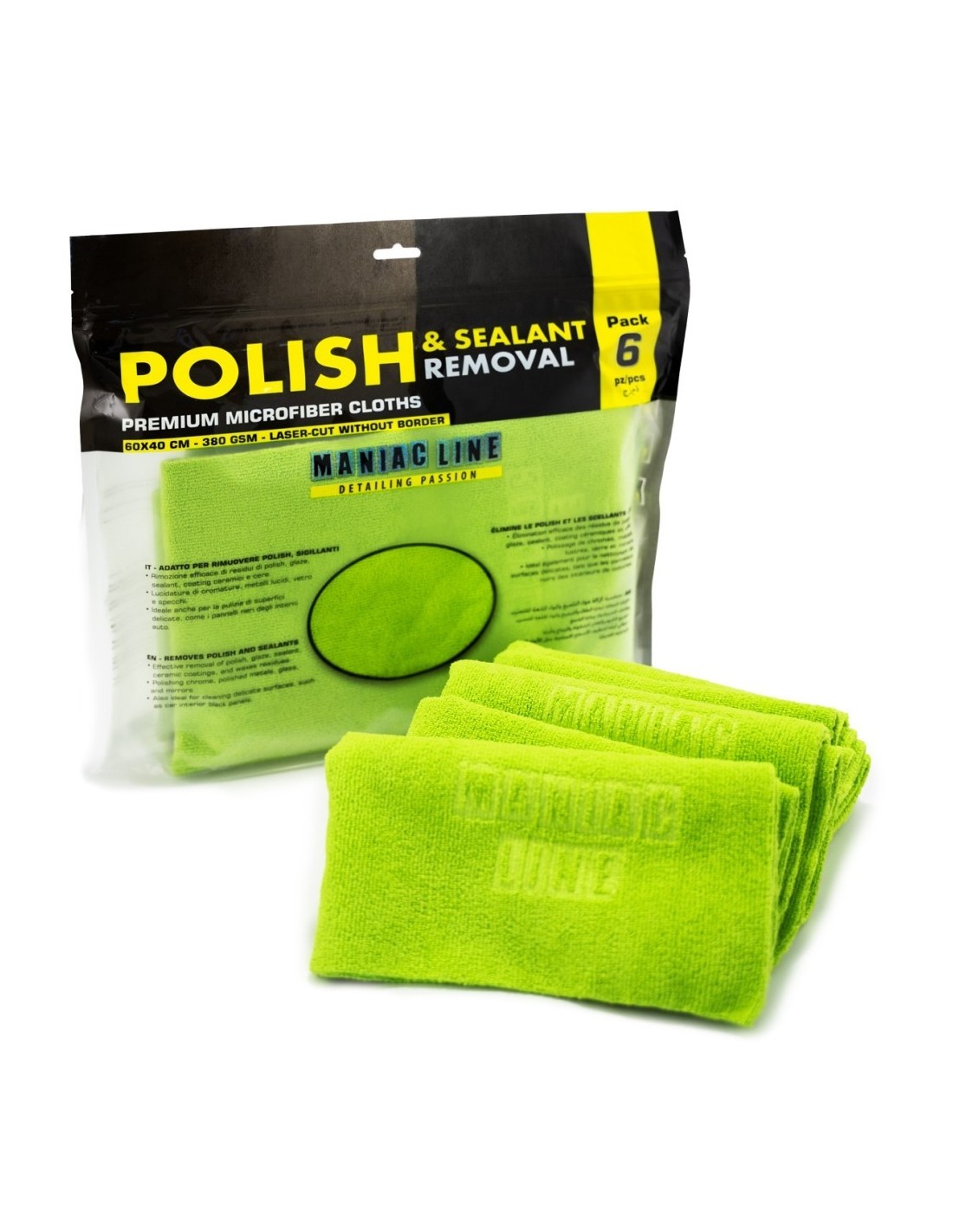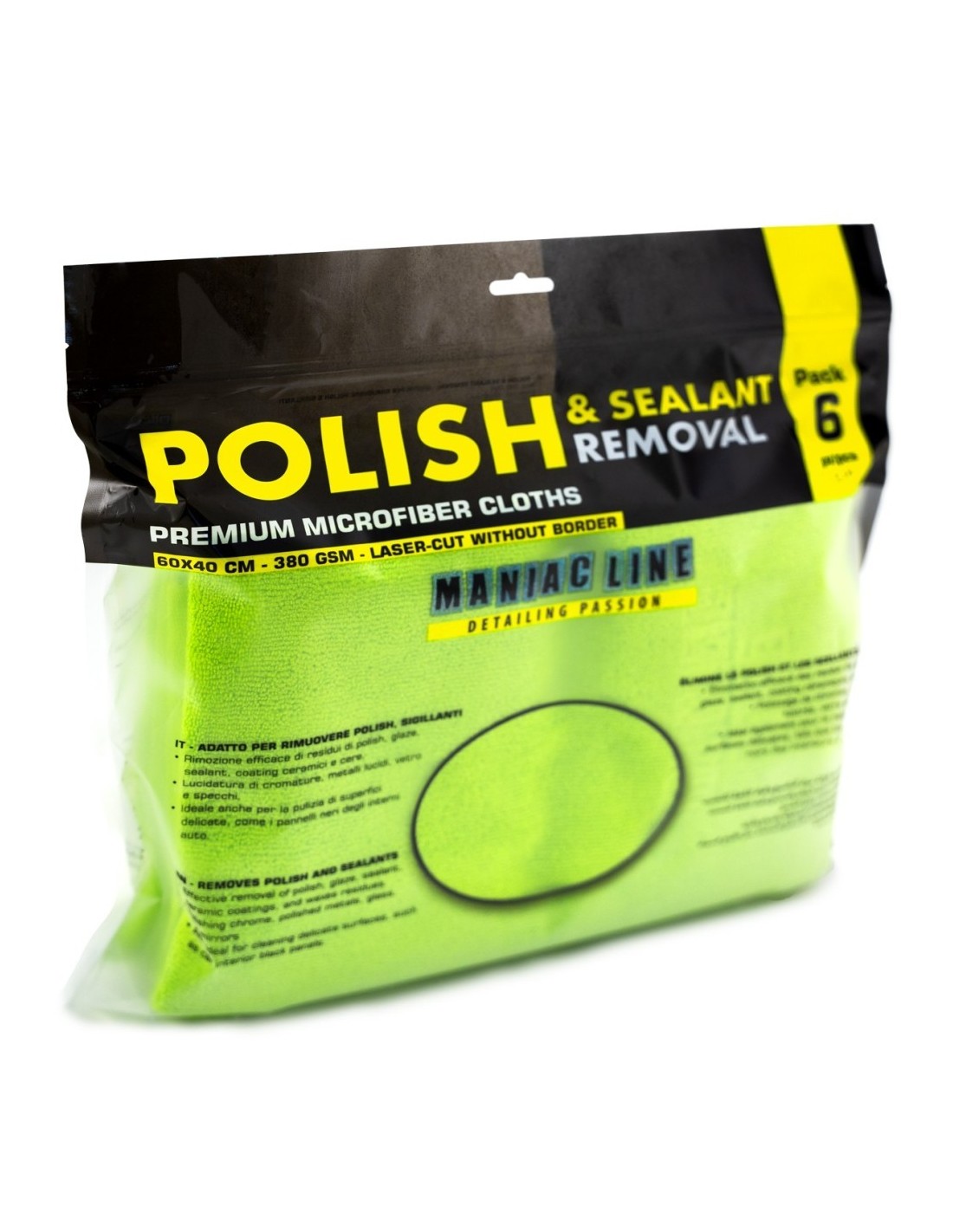 Il nuovo panno in microfibra Maniac Line per la rimozione di polish e sealant è uno strumento di pulizia di alta qualità, progettato per affrontare con efficacia i lavori più impegnativi. Questo panno senza bordi presenta la stessa pregiata tessitura in microfibra su entrambi i lati, rendendolo ideale per rimuovere residui oleosi di polish, sealant, glaze, cere e altri trattamenti senza lasciare aloni o segni su vernici estraneamente sensibili.