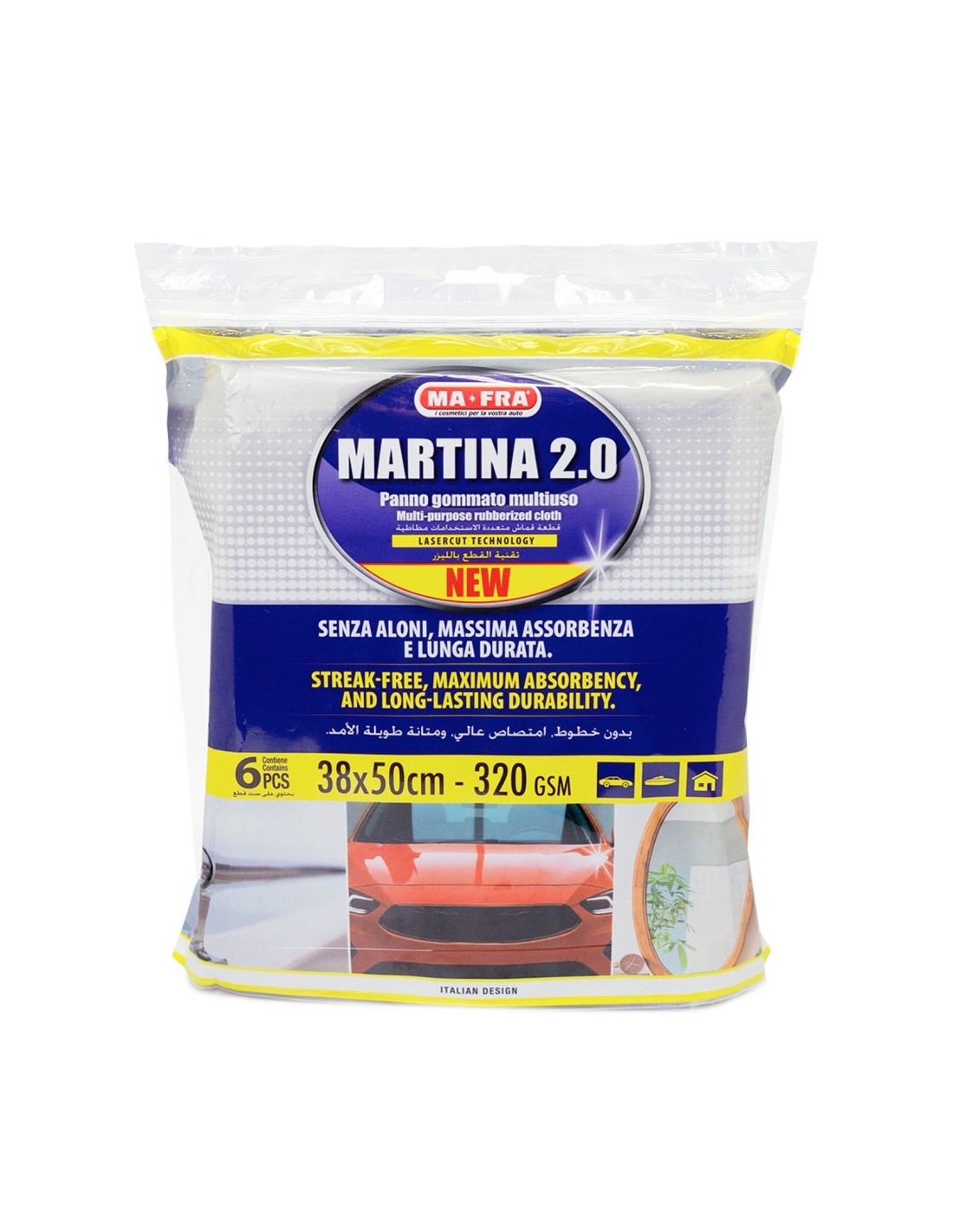 Martina 2.0 è un panno gommato multiuso che rappresenta una rivoluzione nel mondo della pulizia, grazie alla sua composizione bilanciata in microfibra, poliuretano e poliestere. Questa combinazione unica sfrutta le proprietà complementari di ciascun materiale per offrire risultati superiori rispetto ai panni tradizionali.